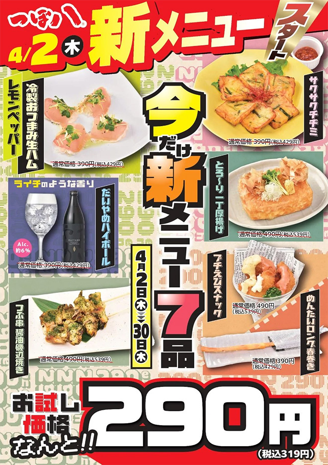 メニューついては「つぼ八本部」へ